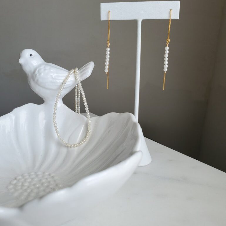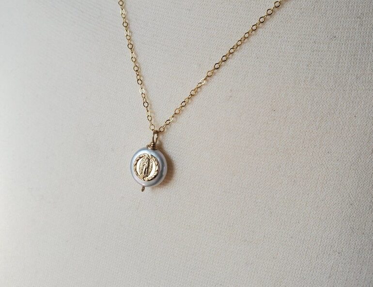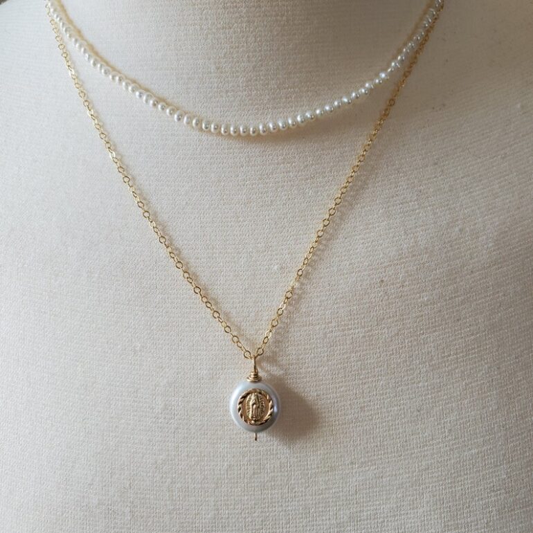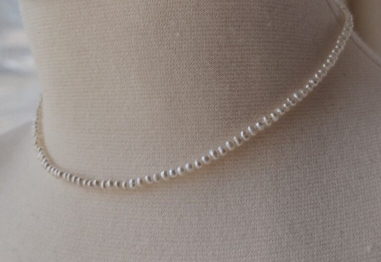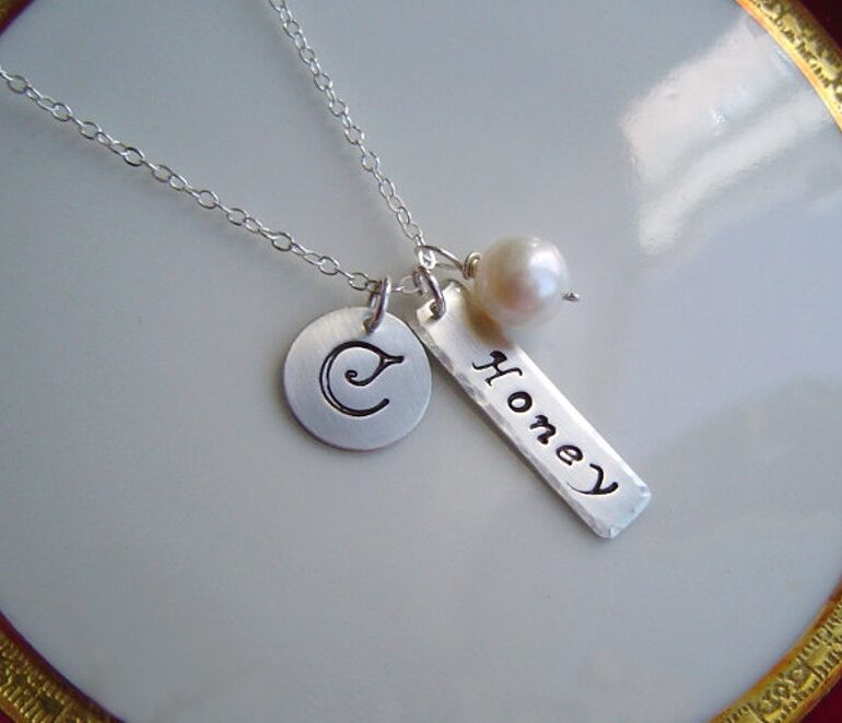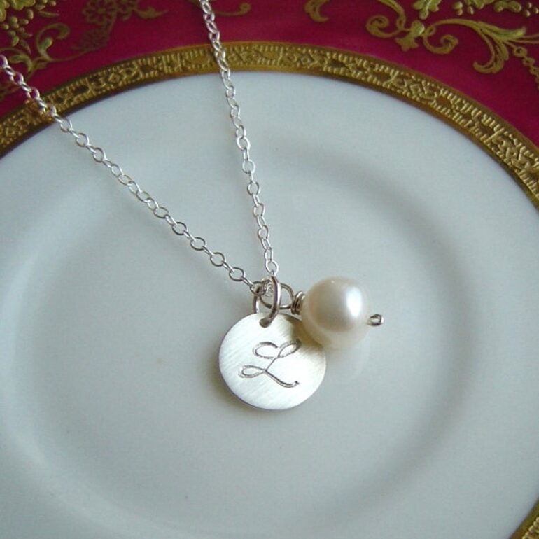 Sterling Silver Initial Disc Freshwater Pearl, Keishi Pearl, Seed Pearl Choker, Personalized Name Necklace, 14K Rose Gold Pear...